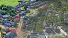 图像来自一架低空飞行的直升机是公关eferred for the modelling of exteriors, walls, courtyards, roofs and main grounds. The resulting models substitute most of the floor-plan model, correct heights and add details. For these parts, and indoor areas not visible from the helicopter, or for which a high degree of geometrical detail is required, ground-based, pre-calibrated, high-resolution digital cameras or laser scanners should be used. Both measurement systems have advantages and disadvantages. Images can be taken faster and cameras manoeuvred more easily than slower, bulkier laser-scanners. Images also capture both geometry and texture. Generally the choice depends on surface complexity, texture and conditions of space. When space limitations mean images cannot be taken with good configuration and overlap, laser scanning is generally preferred; this provides direct 3D data. Both triangulation and time-of-flight systems can be used; the former work at short distance and with very high accuracy, while time-of-flight systems work at longer distances (e.g. 300–1,000m) at the cost of reduced accuracy. A disadvantage of most laser-scanners is the lack of high-quality texture information, which is usually acquired with a separate digital camera.