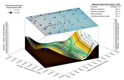 朱诺冰原研究计划(JIRP)计算出,在过去20年里,阿拉斯加塔库冰川的变薄速度从平均每年半米增加到每年两米....